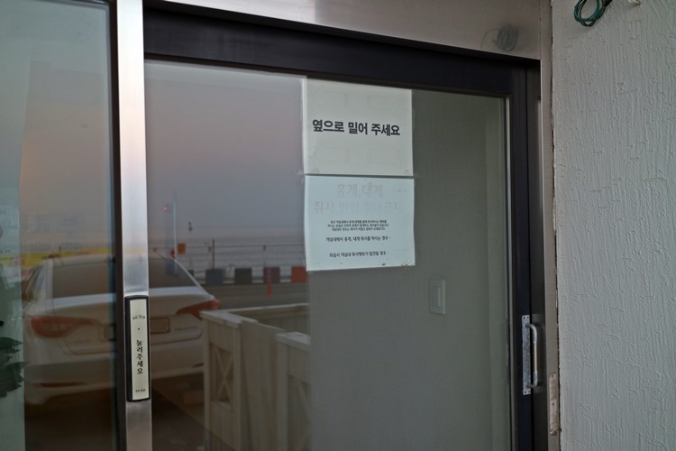 현관은 옆으로 밀어서 들어가셔야 합니다.