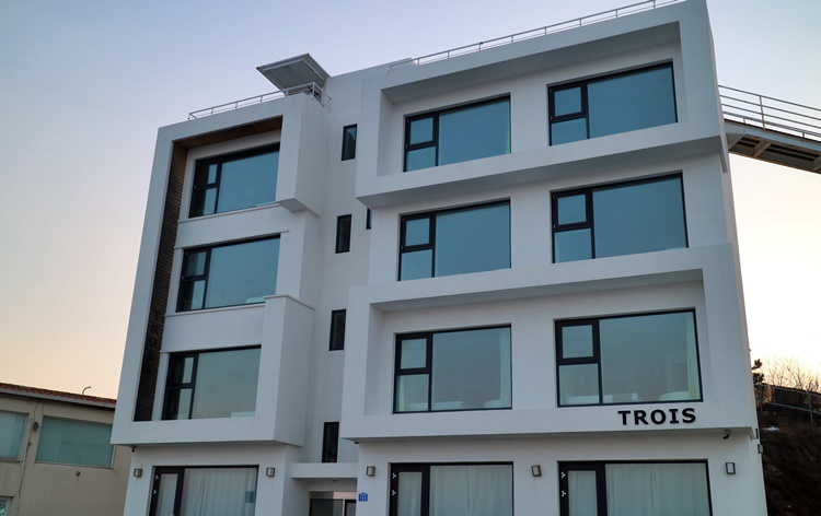 열심히 운전해 도착한 트로이스 펜션의 외관입니다.